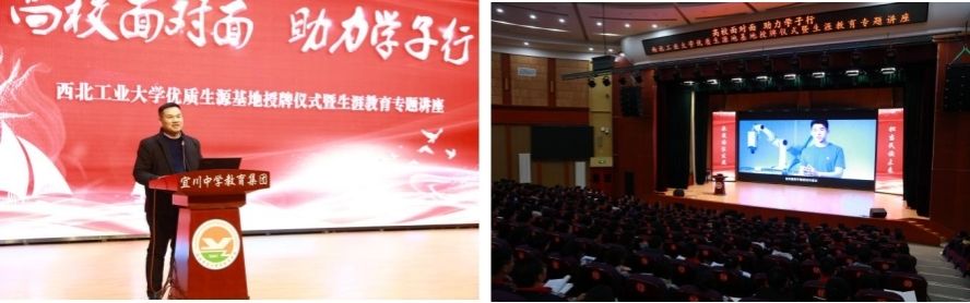 向宜川中学赠送纪念品,并以《以终为始-职业规划筑梦前行》为题,从点燃理想、追逐理想、实现理想三个方向介绍了生涯规划、能力培养、价值塑造等内容,分享了身边优秀学子的案例,勉励同学们明确目标、坚定信心,找准自己的兴趣爱好,做好学科和专业规划,以行之有效的行动去实现梦想。