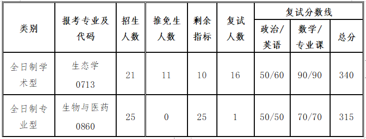 二、各专业复试分数线