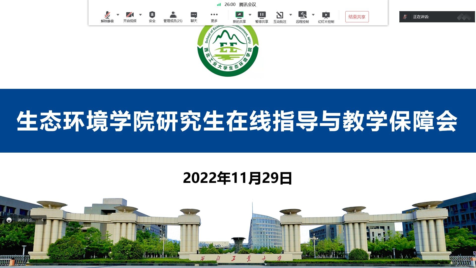 王宇恒介绍近期研究生授课的有关情况,要求全体授课教师做好教学工作,及时了解学生学习情况,确保线上线下有序衔接。王宇恒强调各位导师应时刻肩负起第一责任人职责,做好对研究生的思想引导、学术引领、科研训练等指导工作,确保按期保质保量完成学业学习、开题答辩、中期检查、学位申请和毕业答辩等工作。