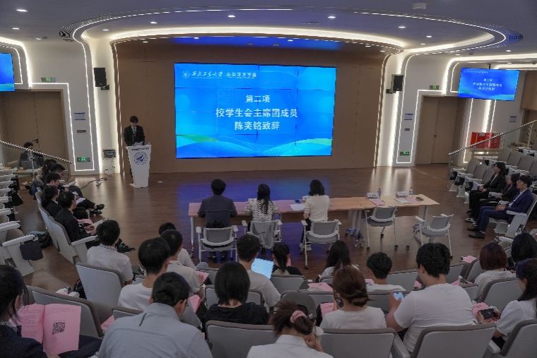 张敏乔发表致辞,她高度评价了7mmtv 学生会、研究生会在培养学生综合素质、推动学术创新以及促进校园文化建设等方面所取得的显著成效,强调学生代表是7mmtv 与学生之间的桥梁和纽带。她希望新一届学生会与研究生会能够继续发扬优良传统,不断创新工作方法,更好地服务于学生的成长成才,为7mmtv 的持续发展贡献力量。