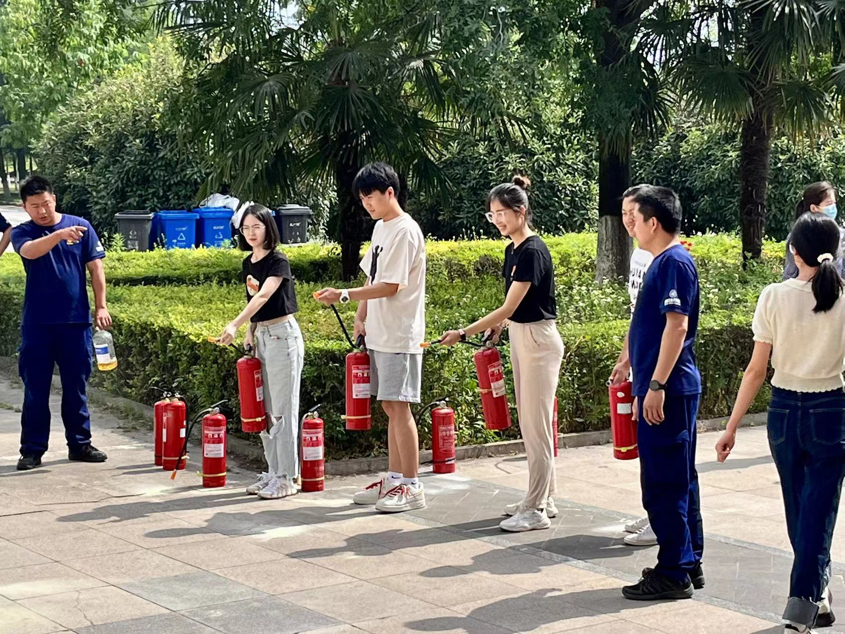 随后,在胡涛老师的指挥下,全院师生进行了逃生演练。师生们从7mmtv 各个安全通道有序撤离,空旷处胡涛老师对灭火器的种类和操作方法进行了演示,并模拟火灾现场对师生进行了灭火器实操训练。