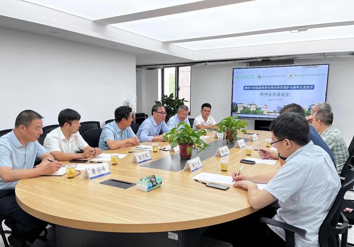 组织召开科研合作座谈会,陕西省宁西林业局党委书记辛力、林政资源科科长兰宏超、林政资源科副科长蒲海峰、皇冠林场副场长胡佳乐、西北大学生命科学7mmtv