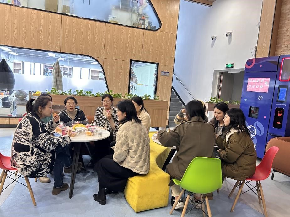 的女教职工代表共聚沙龙区,畅谈女性话题,共叙美好时光。