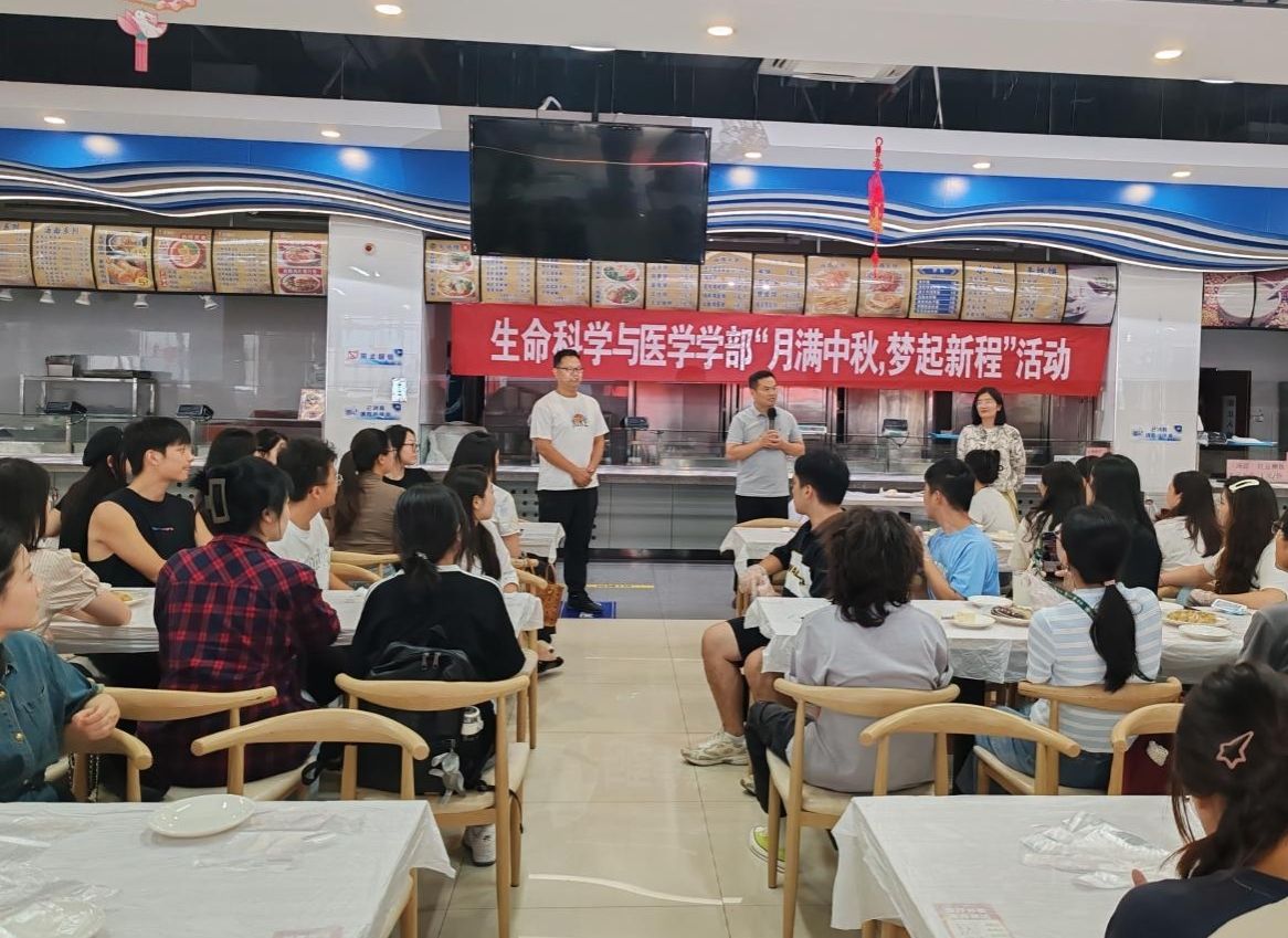 金风摇桂影,玉露映月华。9月14日下午,生命科学与医学学部在海天苑一楼餐厅成功举办“月满中秋,梦启新程”中秋迎新活动。学部党委书记段利兵,副书记万海东、张敏乔与学部2024级本研新生及部分教职工欢聚一堂,共庆佳节,开启学海新航。本次活动由万海东主持。