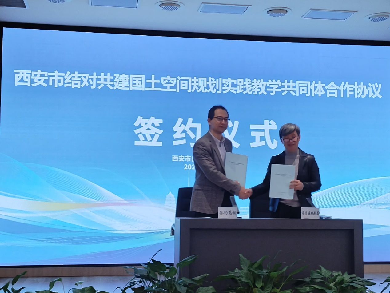 市资源规划局副总督察刘岗在签约仪式上指出,本次“共同体”建设不仅是一次思想的“革新”,更是一次“架桥”的新作为,旨在通过深度合作,为西安城市高质量发展提供智慧与人才双支撑。他指出,随着国家对国土空间规划的高度重视和相关部门的重新整合,赋予了国土空间规划更加丰富的内涵,肩负了包括城市规划、农业、林业、旅游业、生态和环境保护等多方面的任务,也对该领域的人才培养提出了更高的要求。他强调,合作签约仅是开始,双方需以改革姿态和创新气魄,共同塑造城市发展典范,彰显西安的文化自信与时代担当。
