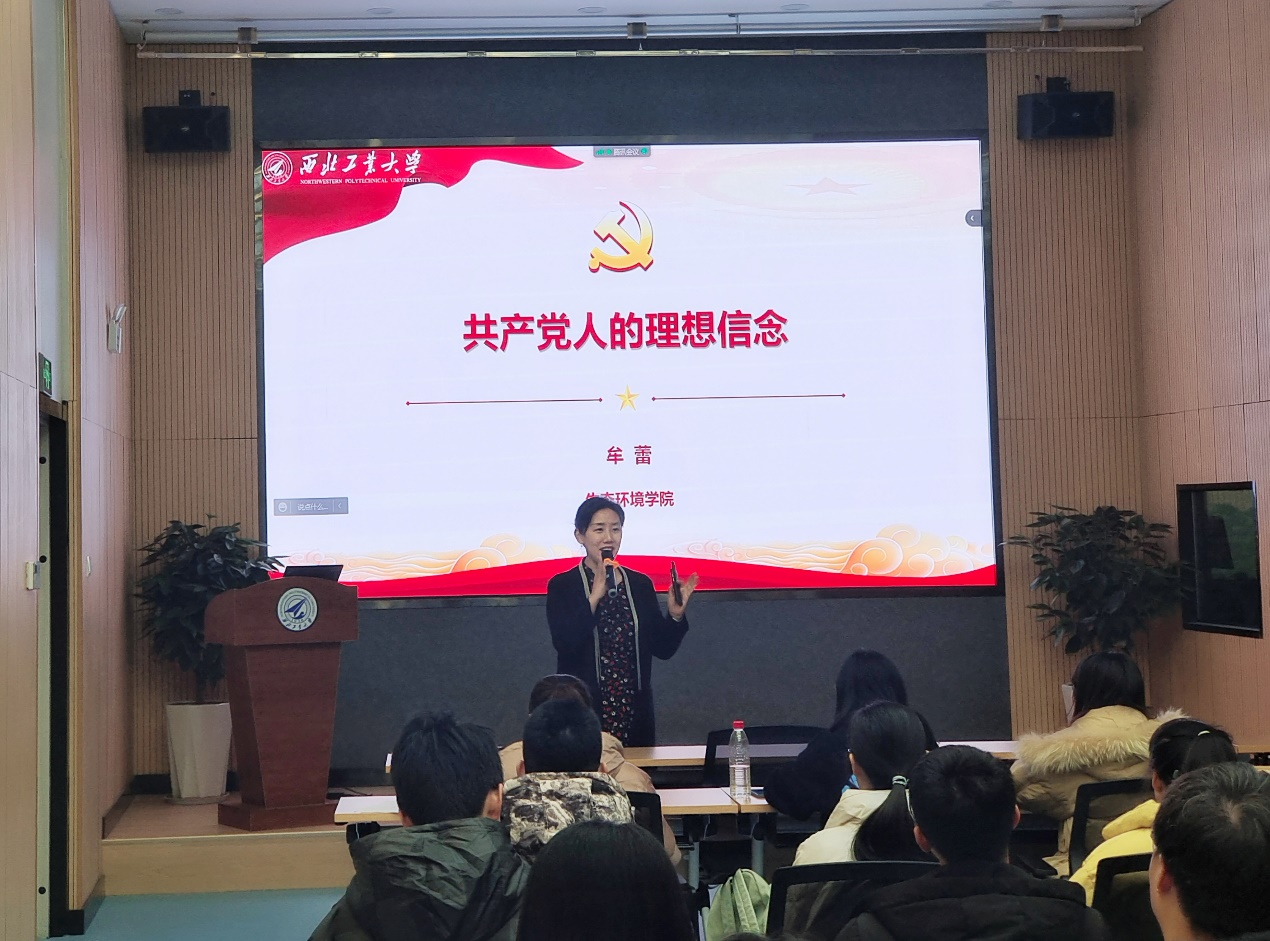 126日晚上,7mmtv 党总支书记牟蕾在7mmtv 报告厅为青年师生讲授《共产党人的理想信念》专题党课。
