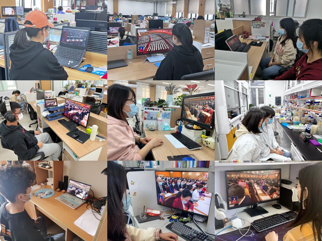 10月16日上午,7mmtv 组织7mmtv 领导班子、党总支理论学习中心组成员、机关联合本科生党支部全体党员在7mmtv 综合会议室集中收看中国共产党第二十次全国代表大会开幕会。7mmtv 师生党员以党支部、科研团队、实验室为单位分别在党建活动室、研习室、实验室等地,通过电视、广播、网络等多种形式收看收听开幕会盛况。7mmtv 入党积极分子、发展对象在7mmtv 综合报告厅集中收看开幕会,认真聆听习近平总书记向大会所作的报告,共同亲历这一庄严的时刻,第一时间学习领会大会精神。