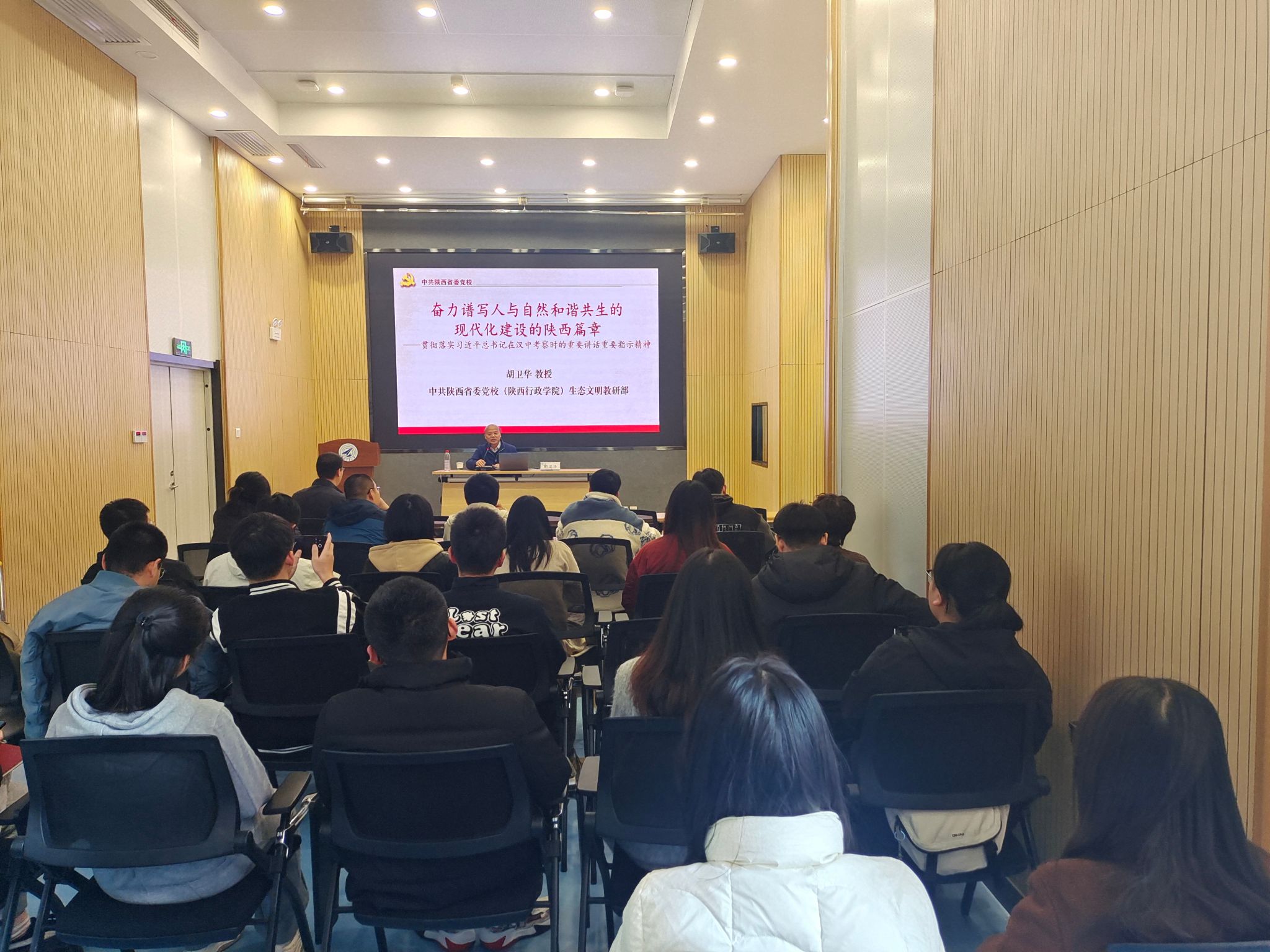 中共陕西省委党校(陕西行政7mmtv )生态文明教研部胡卫华教授以《奋力谱写人与自然和谐共生的现代化建设的陕西篇章--贯彻落实习近平总书记在陕西汉中考察时的重要讲话重要指示精神》为参训学员讲授了第一课。胡卫华从习近平总书记关于人与自然和谐共生的现代化的重要论述、习近平总书记对陕西生态文明建设的要求、结合实际推进陕西省人与自然和谐共生的现代化建设等三大方面层层推进、深入浅出的阐释了习近平生态文明思想的形成过程和鲜明特征,多维度解读了陕西省生态文明建设的总体要求、总体方向和实践路径,引导参训学员进一步牢固树立“绿水青山就是金山银山”的理念,为打好蓝天碧水净土保卫战贡献更大力量。
